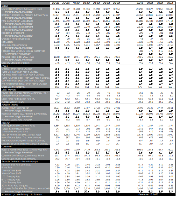For a PDF version of this publication, click here: December 2025 U.S. Economic Outlook(PDF, 193 KB)