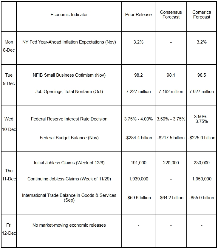 For a PDF version of this publication, click here: Comerica Economic Weekly, December 8, 2025(PDF, 180 KB)